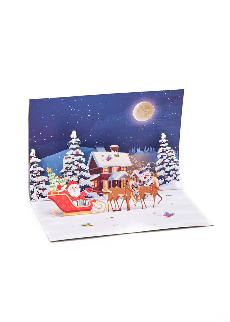 Weihnachts-3d-pop-up-karte, Weihnachts-elchschlitten-grußkarte