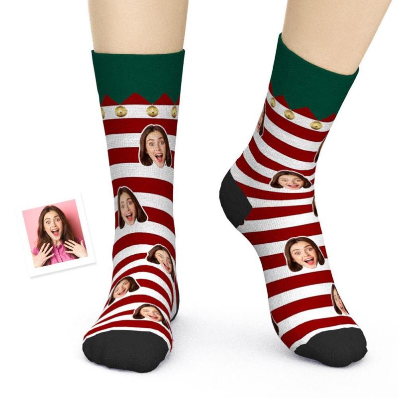 Valentinstag Geschenk Benutzerdefinierte lustige Gesichtssocken - Glocken und Streifen