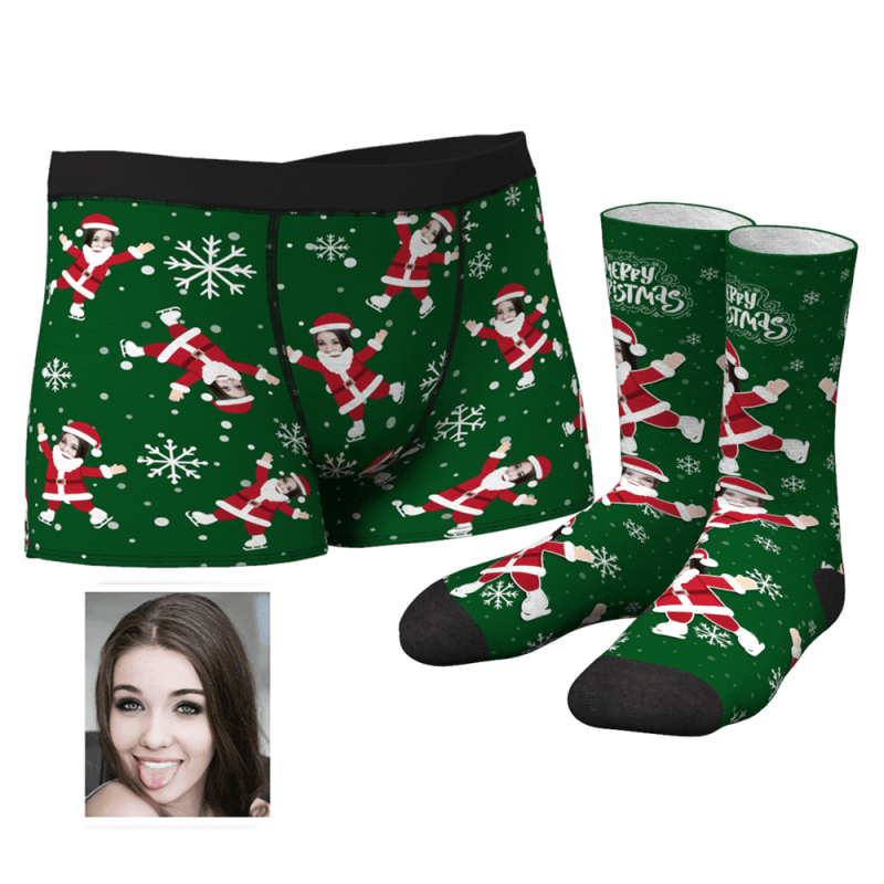 Herren Fr?hliche Weihnachten Gesicht Auf K?rper Boxershorts Socken Set