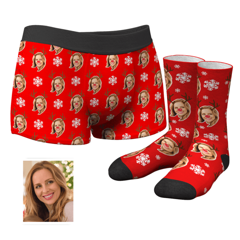 Frohe?Weihnachten Herren Gesicht Boxershorts Unterhose& Gesicht Socken Boxersocken Set