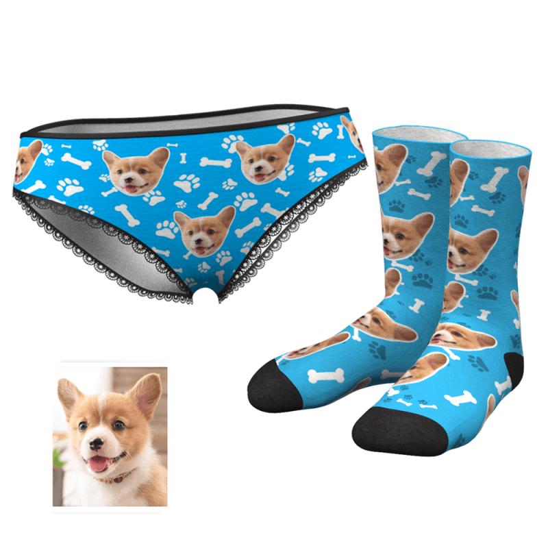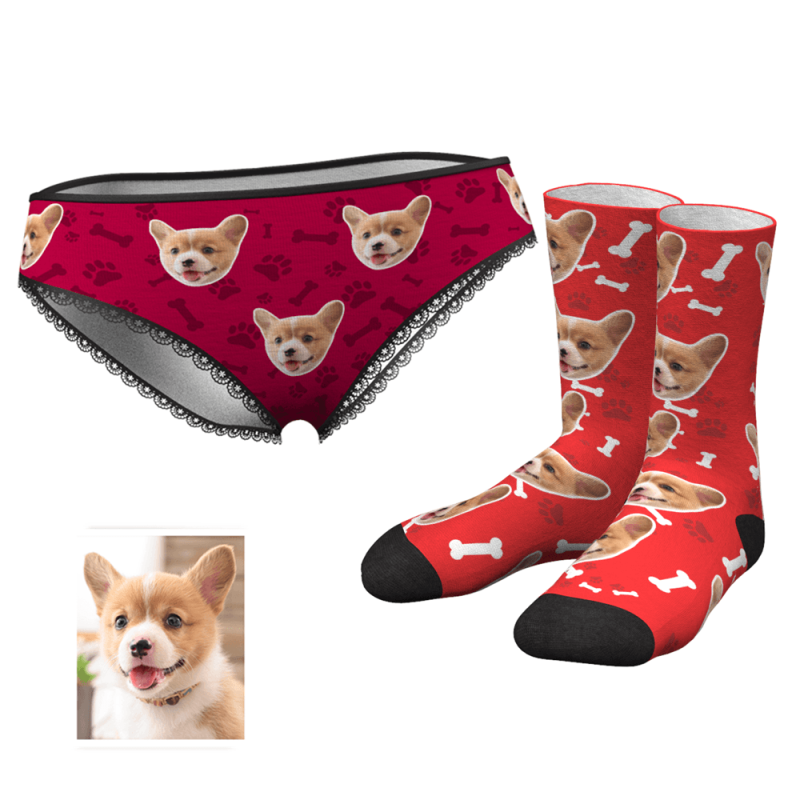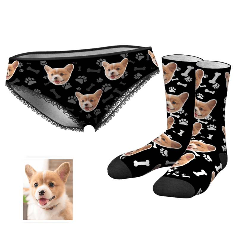 Herzhöschen Socken Gedruckt Gesicht Liebhaber Set - Hundeklaue und Knochen