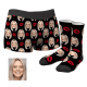 Personalisierte Herren Gesicht Boxershorts Unterhose& Socken Boxersocken Kuss Set