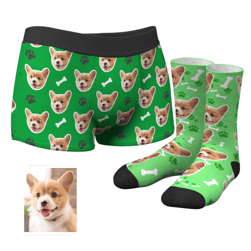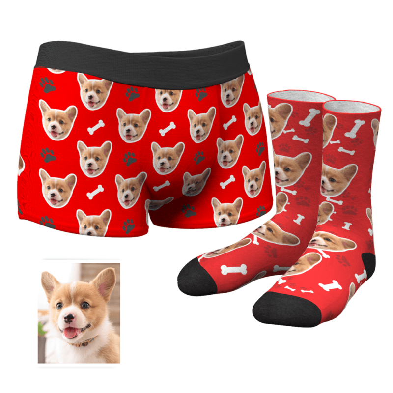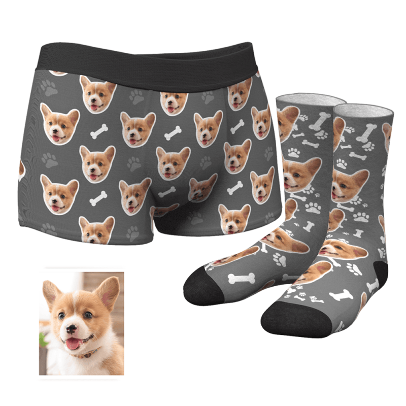 Herren Personalisierte Gesicht Boxershorts Unterhose& Socken Boxersocken Set - Hundeklaue und Knochen