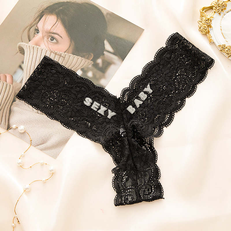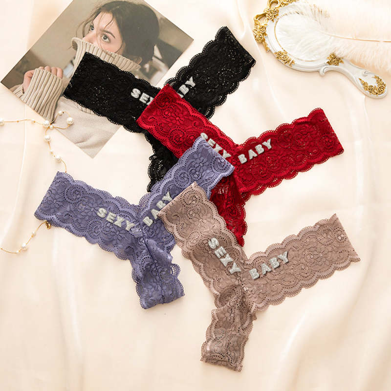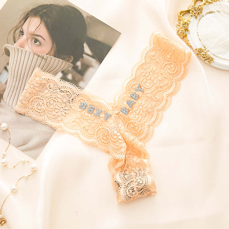 Benutzerdefinierter Kristall-buchstaben-tanga, Sexy Spitzen-v-string-höschen Für Frauen