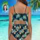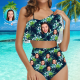 Benutzerdefinierte Gesicht Bikini Frauen Rüsche Sommer Bikini High Waisted Badeanzüge Geschenk für Sie - Blätter & Flamingo