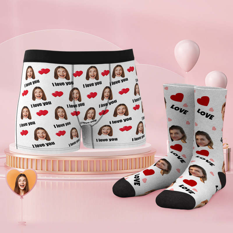 Benutzerdefinierte Gesicht Boxer Shorts und Socken Set Liebe