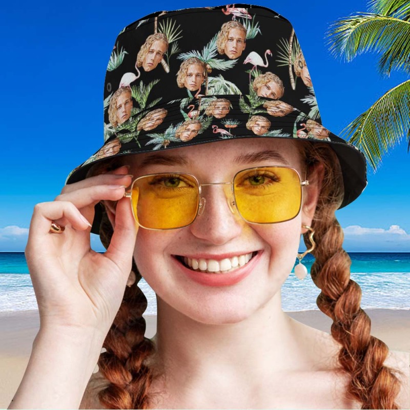 Benutzerdefinierte Face Bucket Hat Unisex Face Bucket Hat Flamingo Nights Palmtrees
