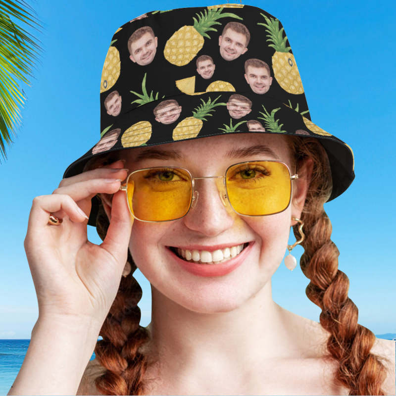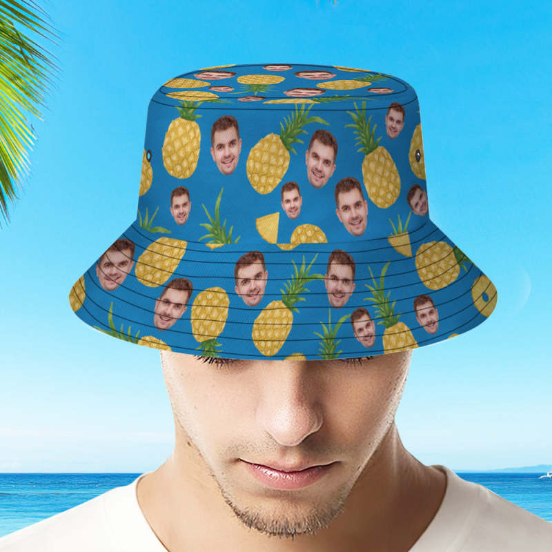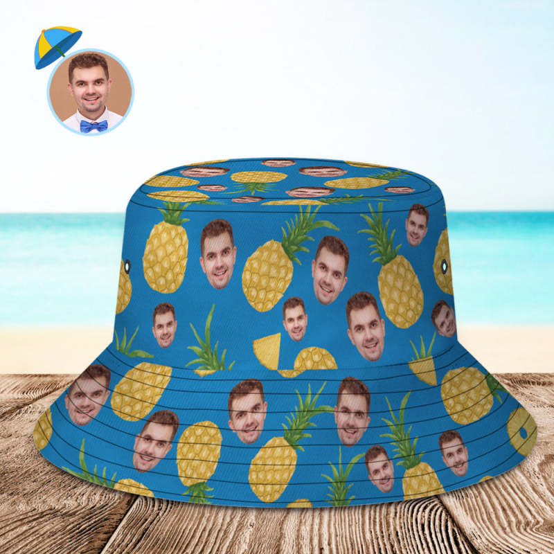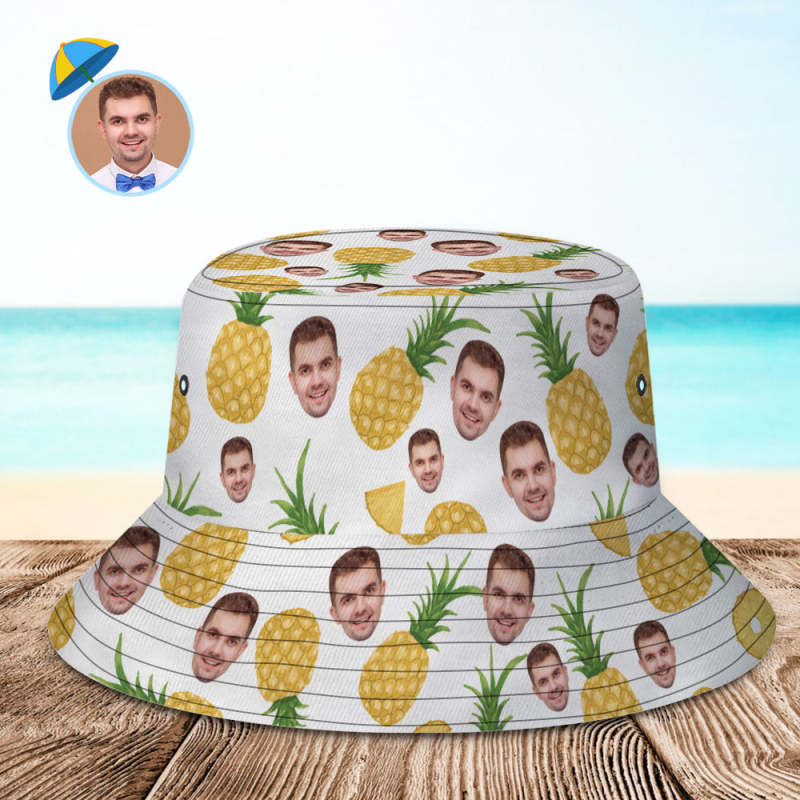 Benutzerdefinierte Gesichts-eimermütze, Unisex, Personalisiertes Foto, Ananas-sommermütze, Bunte Wander- Und Strandhüte