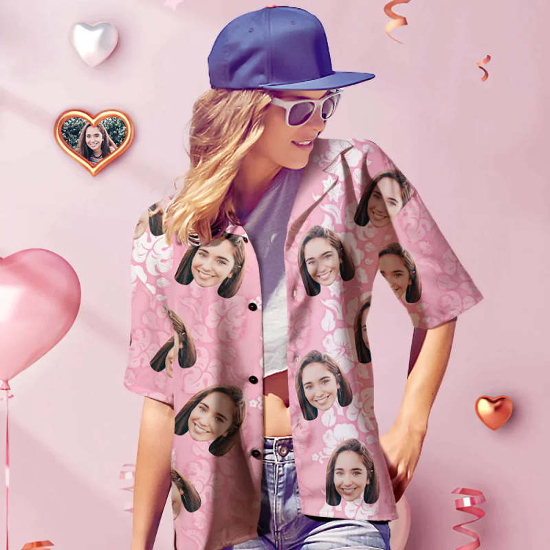 Benutzerdefinierte Gesicht Paar Passende Hawaii Shirts Honolulu Leis Valentinstag Jubiläum Geschenk