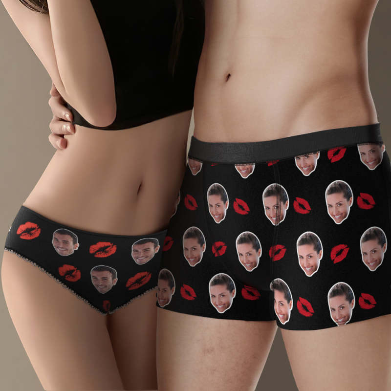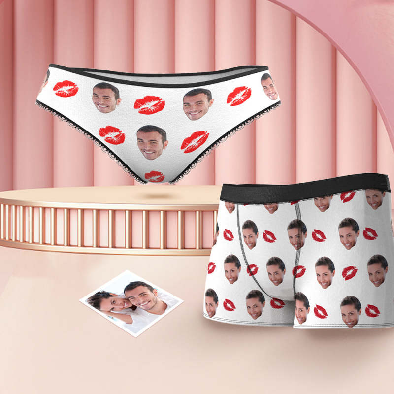 Passende Unterwäsche Für Paare Mit Individuellem Gesicht, Roter Lippenstift, Personalisiertes Lustiges Unterwäsche-geschenk Für Verliebte