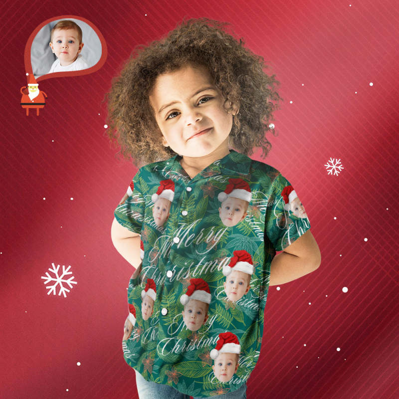 Passendes Hawaiianisches Familien-outfit Mit Individuellem Gesicht, Weihnachts-poolparty, Eltern-kind-kleidung – Blätter Mit Allover-print