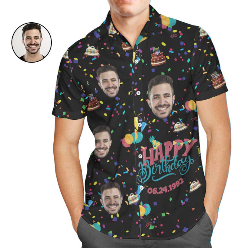 Benutzerdefiniertes Gesicht Alles Gute zum Geburtstag Hawaiihemd Männer All Over Print Einzigartiges Geburtstagsgeschenk