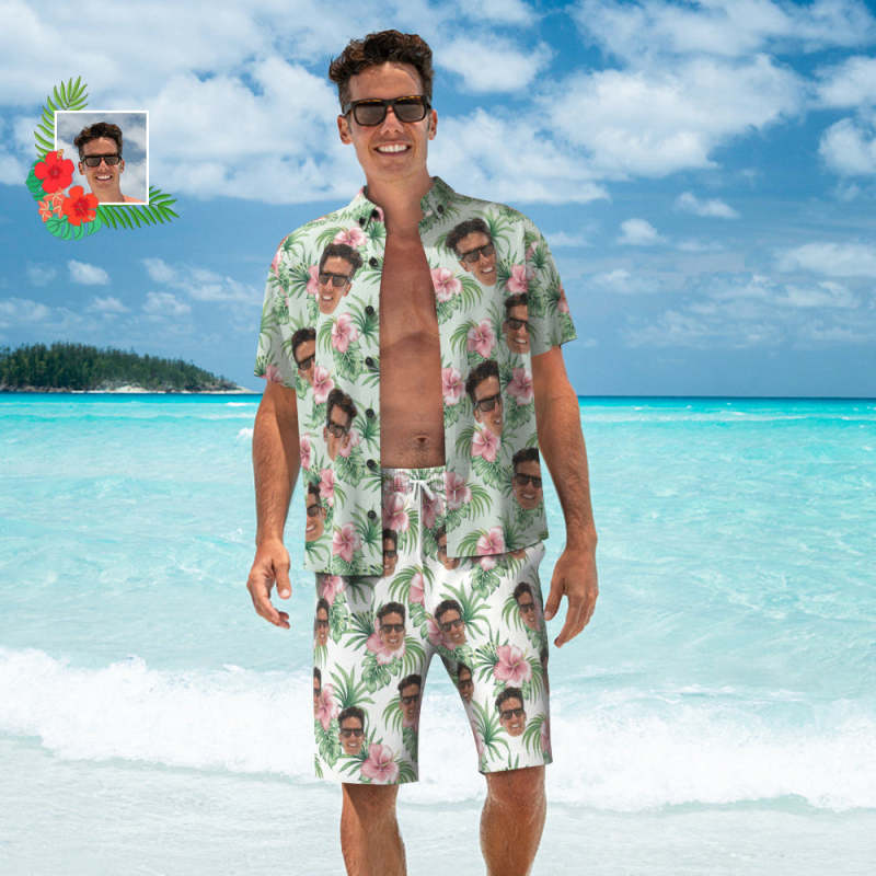 Benutzerdefiniertes Gesicht Hawaiihemd Und Strandshorts Personalisiertes Herrenfoto Tropisches Aloha Urlaubsparty-geschenk