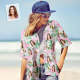 Benutzerdefinierte Gesichts-hawaii-shirt-nummer Im Weinglas, Rosa Und Grüne Ärmel, Gesichts-hawaii-shirt-geburtstagsgeschenk Für Sie
