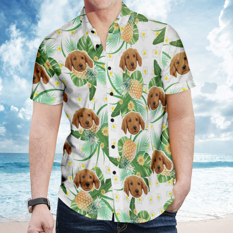 Benutzerdefiniertes Gesicht Hawaiihemd Personalisierte Tierfoto Ananas Sommerhemden für Männer