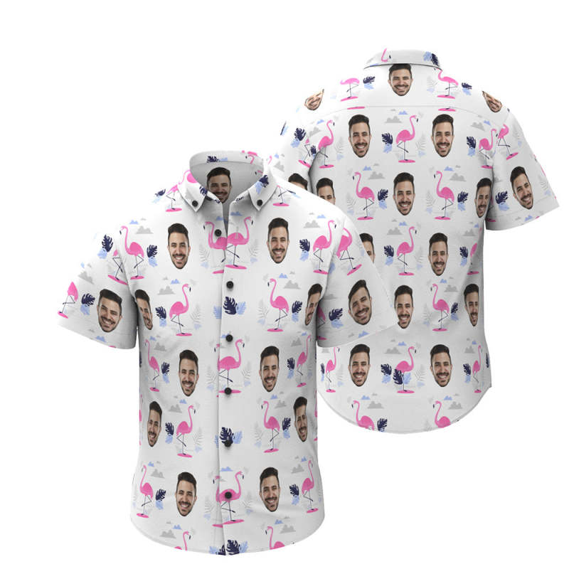 Benutzerdefiniertes Gesicht Hawaii-hemd, Personalisiertes Herren-foto-flamingo-druck-hemd, Urlaubsparty-geschenk