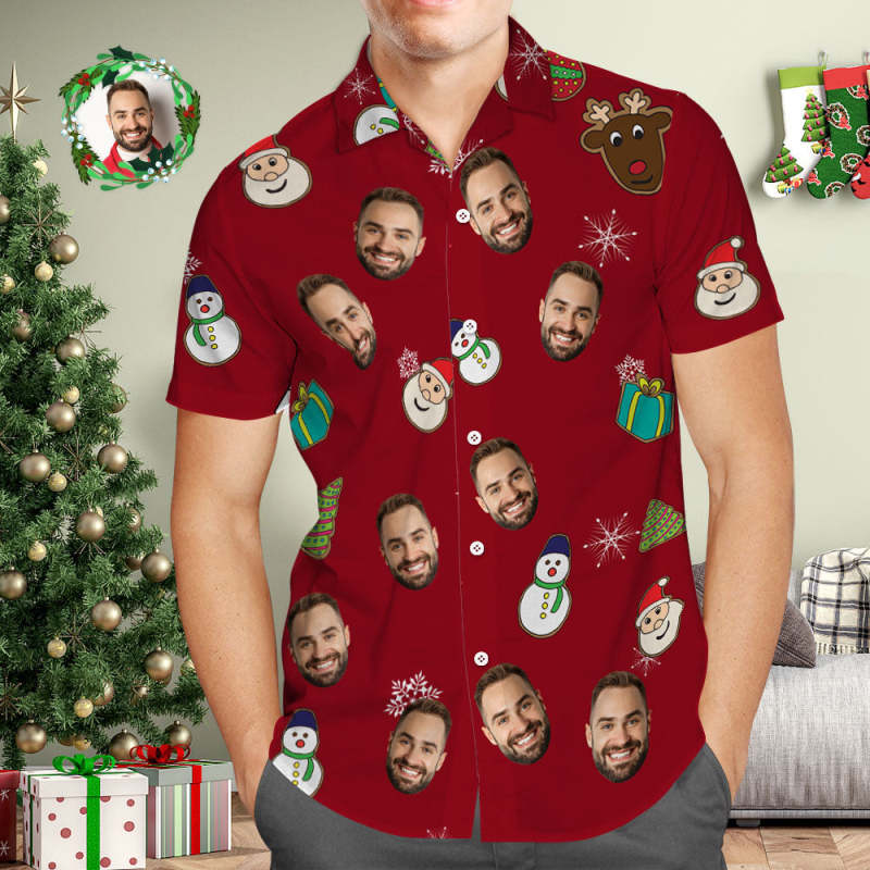 Benutzerdefiniertes Gesicht Hawaiihemd Personalisiertes Foto Rote Hawaiihemden Weihnachtsmann Frohe Weihnachten