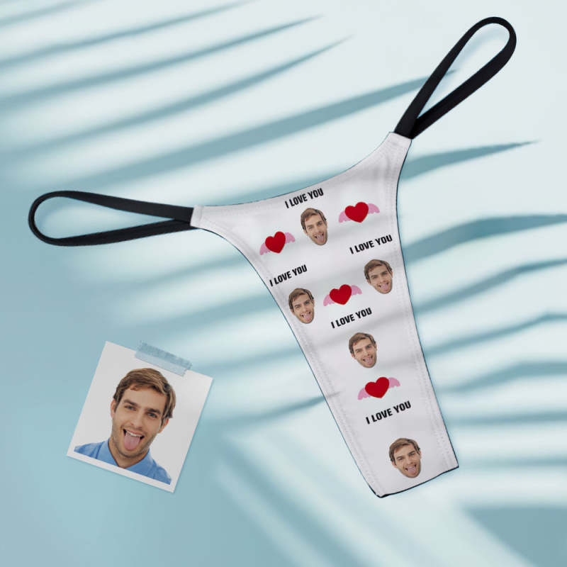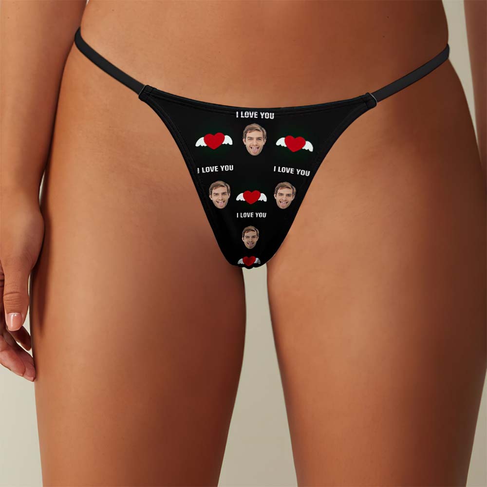 Benutzerdefinierte Gesicht Herz mit Flügeln Frauen Tanga String Geschenk für sie