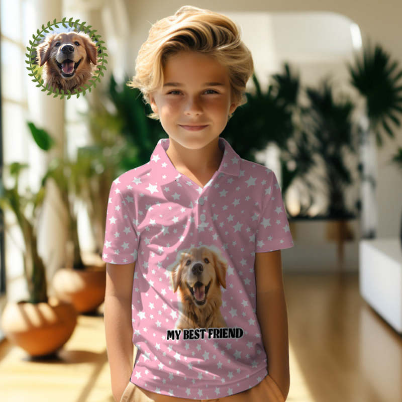 Benutzerdefiniertes Gesicht Kinder-poloshirts, Personalisiertes Haustier-foto-shirt, Rot Kariert, Mein Bester Freund