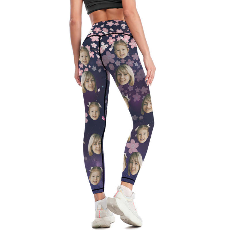 Benutzerdefinierte Gesicht Leggings und Tank Top Yoga Kleidung Anzug Muttertagsgeschenk - rosa Blumen