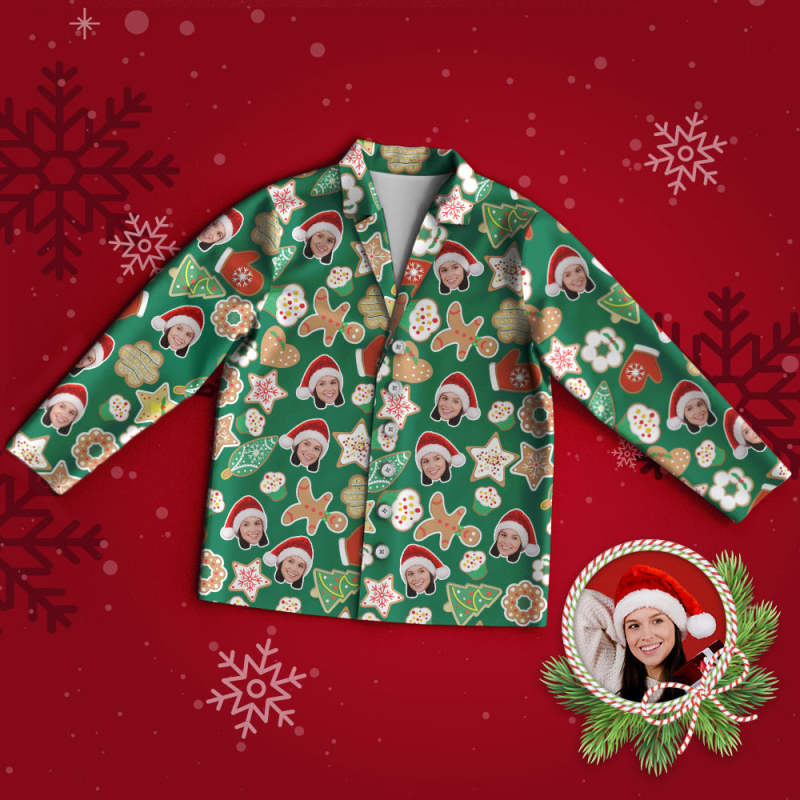 Benutzerdefinierter Gesichts-pyjama, Personalisierter Grüner Foto-pyjama, Weihnachtssocken, Frohe Weihnachtsgeschenke Für Die Familie