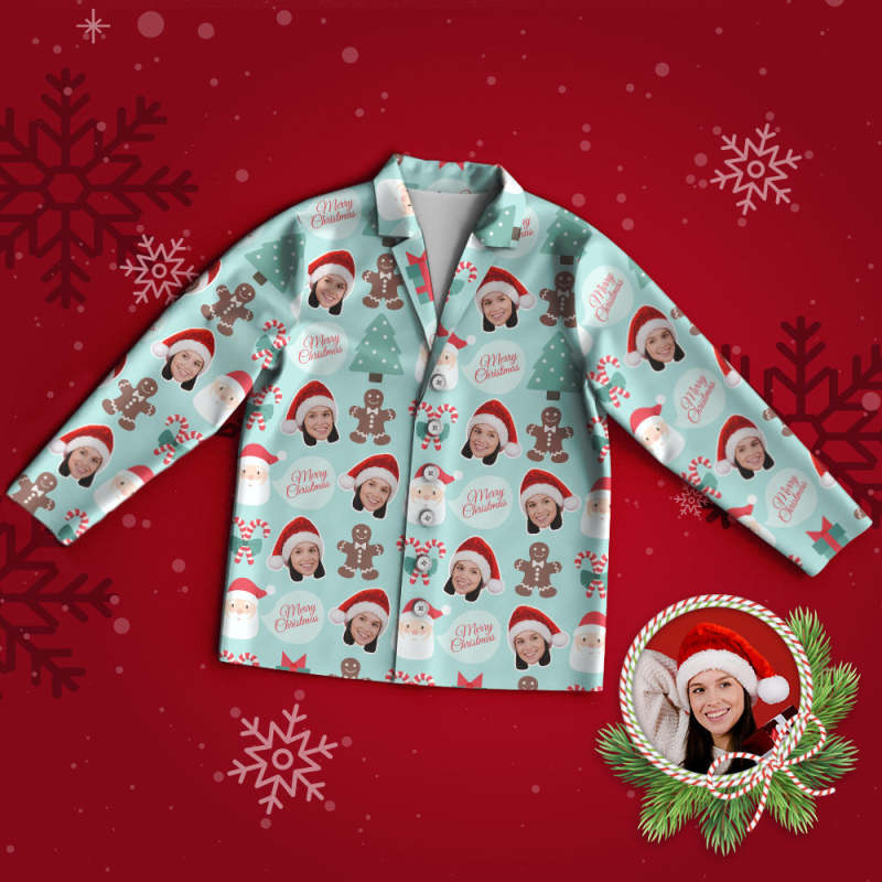 Benutzerdefinierter Gesichts-pyjama, Personalisierter Foto-pyjama, Weihnachtsmann Und Lebkuchenmann. Frohe Weihnachten