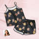 Benutzerdefinierte Gesicht Pyjamas Straps Schlafanzug Shorts Dessous Set Sommer Nachtwäsche mit Cookies
