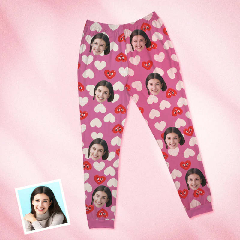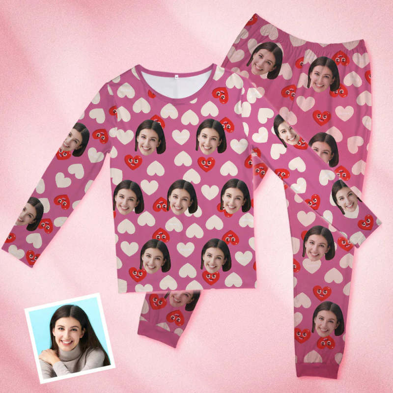 Benutzerdefinierte Gesicht Rosa Pyjamas Personalisierte Rundhals Liebe Lustige Herz Pyjamas für Frauen Valentinstag Geschenk