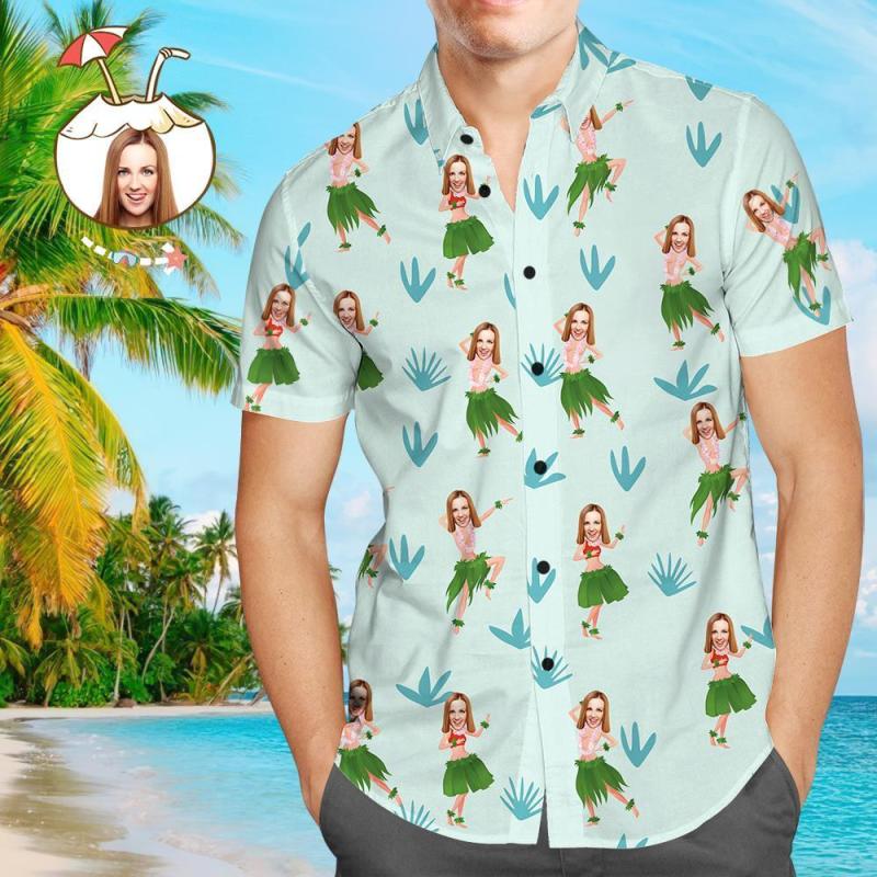 Benutzerdefiniertes Gesicht Shirt Personalisiertes Foto Hawaiihemd für Männer Happy Dance