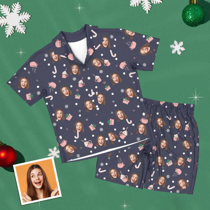 Benutzerdefinierte Gesicht Kurze Ärmel Pyjamas Personalisierte Foto Frauen Männer Nachtwäsche Weihnachtsgeschenke für Liebhaber