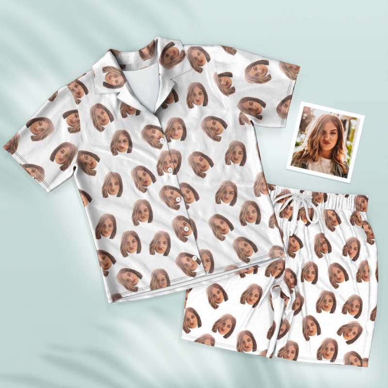 Benutzerdefinierte Gesicht Kurzarm Pyjamas Personalisierte Frauen Nachtwäsche Geschenke Für Sie