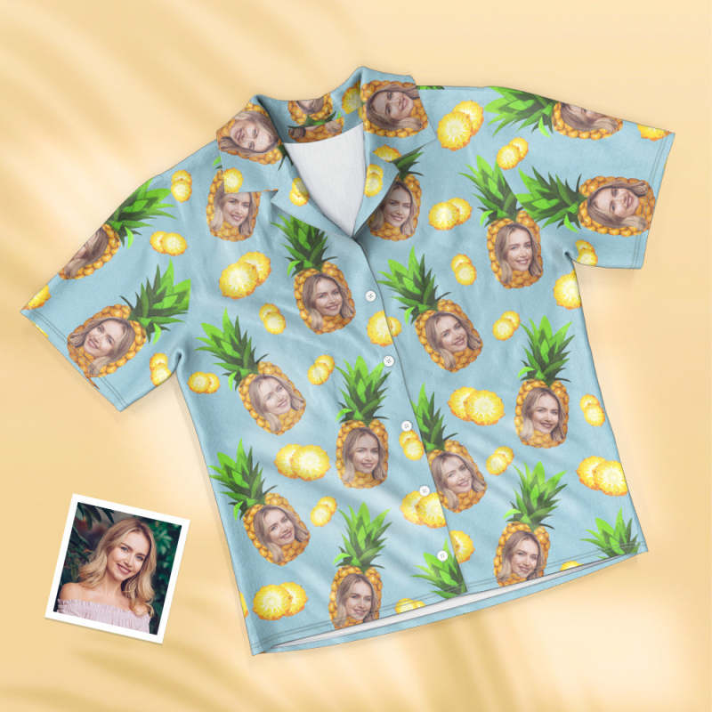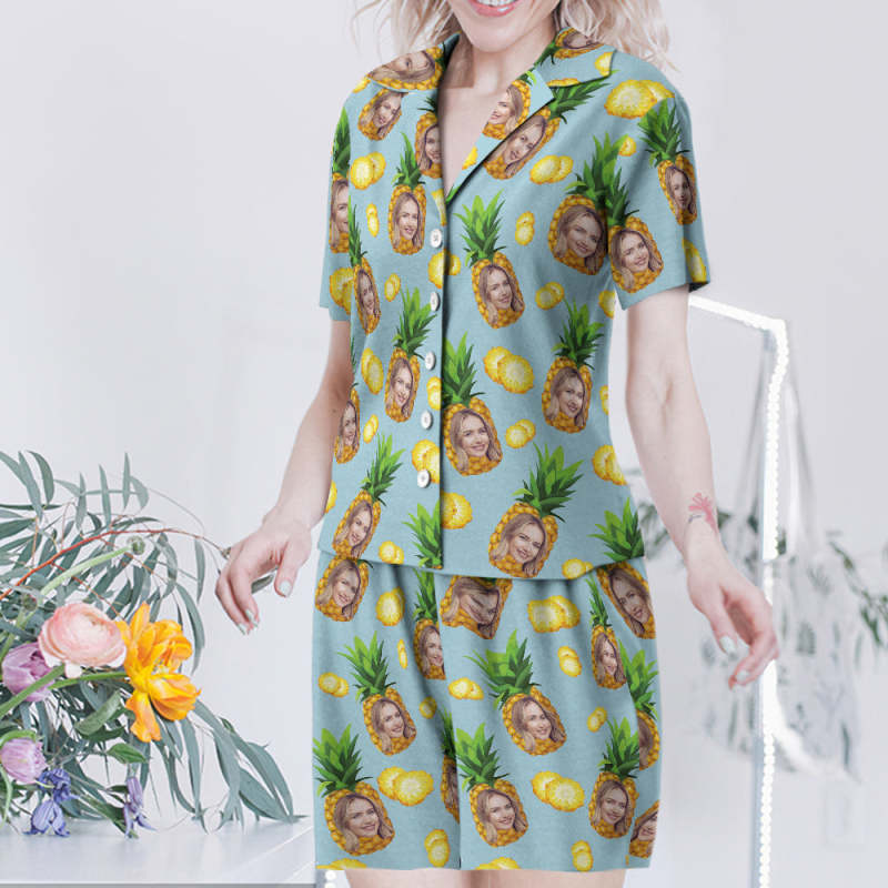Benutzerdefinierte Gesicht Kurzarm Pyjamas Personalisierte Frauen Nachtwäsche Ananas Geschenke Für Sie