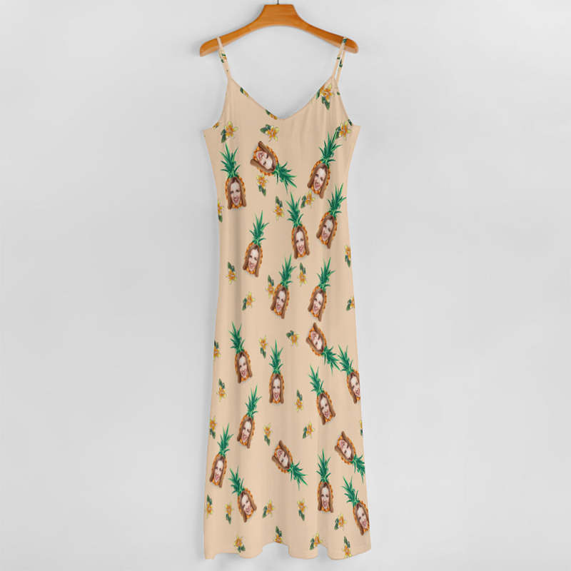 Benutzerdefinierte Gesicht Sling Hawaiian Stil langes Kleid Ananas Muster Tropical Floral