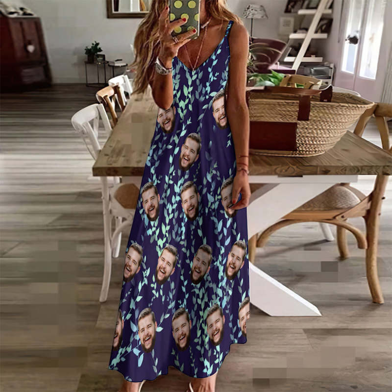 Benutzerdefinierte Gesicht Sling Lange Kleid Blätter