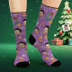 Benutzerdefinierte Gesichtssocken, Personalisiertes Foto, Lila Socken, Cartoon-weihnachtselemente