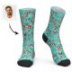Benutzerdefinierte Gesichtssocken, Personalisierte Fotosocken, Weihnachtsgeschenk, Grüne Weihnachtsmannsocken – Elch