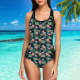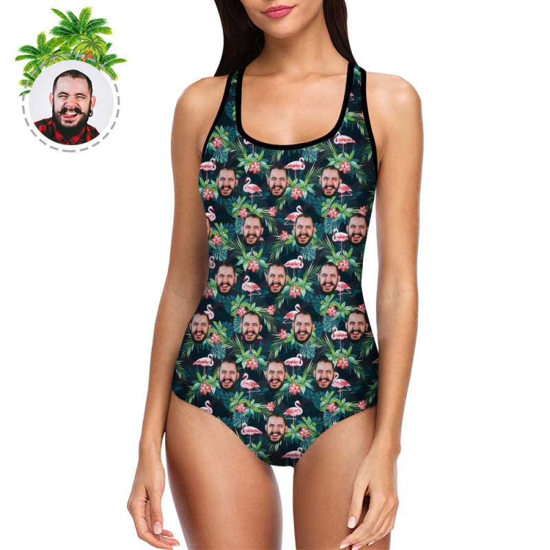 Benutzerdefinierte Gesicht Bademode Frauen Foto Slip One Piece Badeanzug Geschenk für sie - Blätter & Flamingo