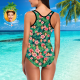 Benutzerdefinierte Gesicht Bademode Frauen Foto Slip One Piece Badeanzug Geschenk für sie - Blätter & Blumen