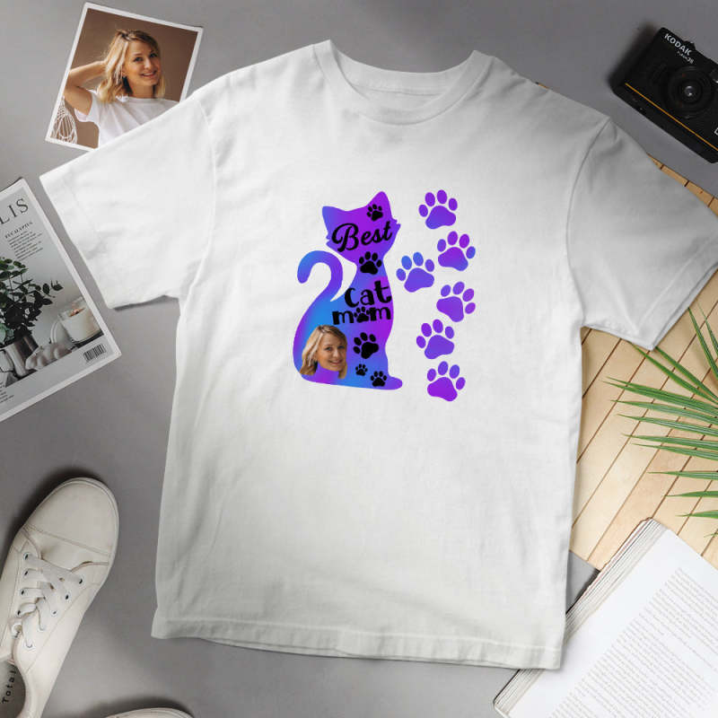 Kundenspezifisches Gesichts-T-Shirt Personalisiertes bestes Katzen-Mamma-T-Shirt