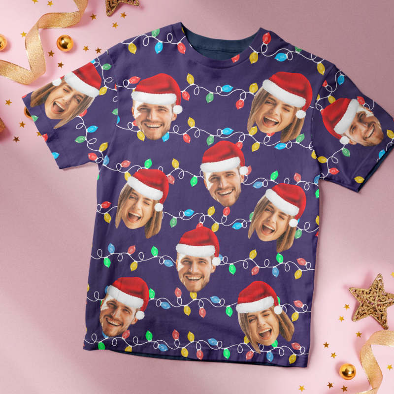 T-shirt Mit Individuellem Gesicht, Personalisierbar, Personalisiertes Foto, Weihnachten, Leds, Unisex-t-shirts, Frohe Weihnachten