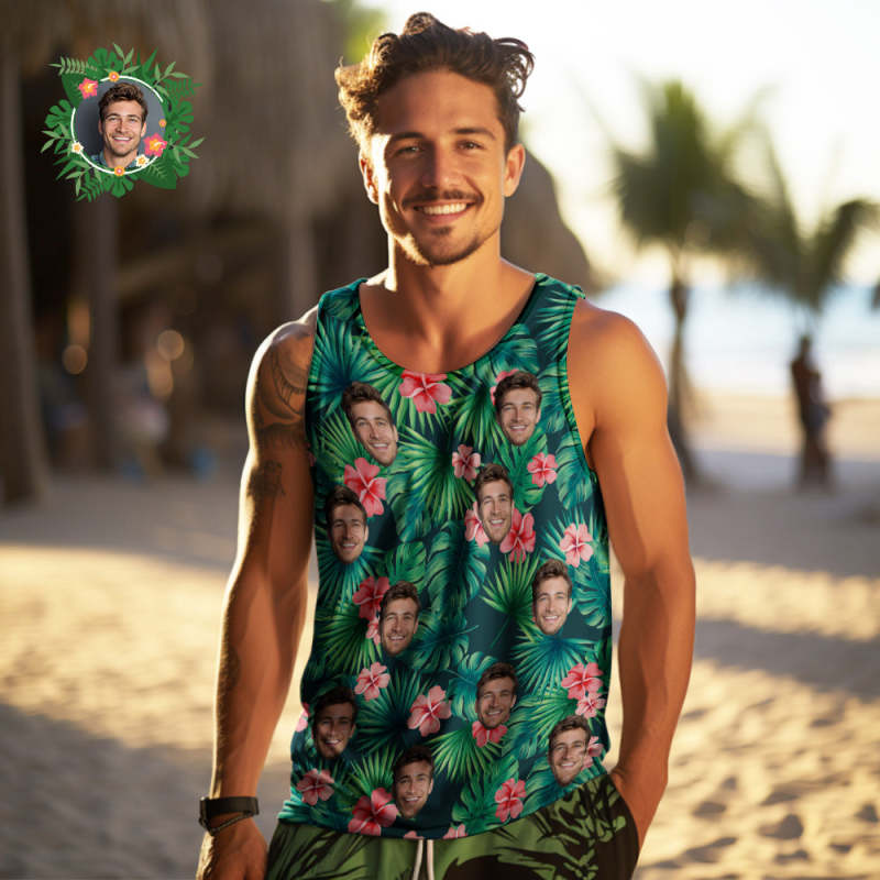 Custom Face Tank Tops Herren Ärmelloses Shirt Rote Blumen