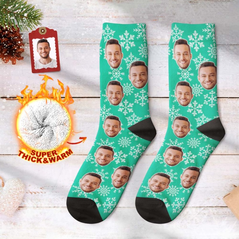 Benutzerdefinierte Gesicht Dicke Socken 3D Digital Gedruckte Socken Herbst Winter Warme Socken Weihnachtsgeschenk für Schneeflocke