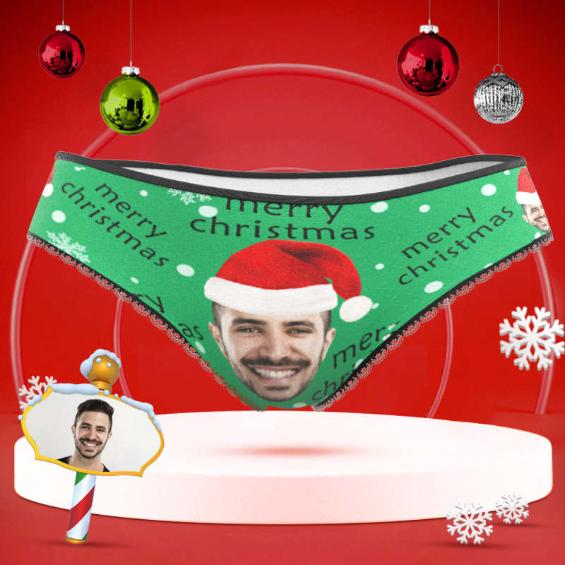 Benutzerdefinierte Gesicht Unterwäsche Personalisierte Frauen High-Cut Slips Höschen Frohe Weihnachten