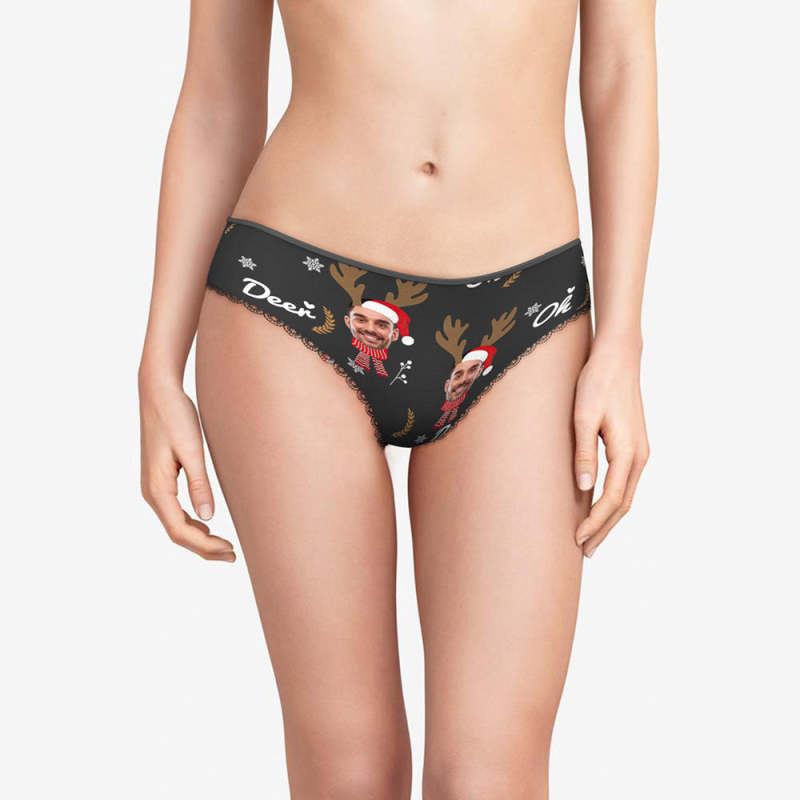 Benutzerdefinierte Gesicht Unterwäsche Personalisierte Frauen Höschen mit Foto Weihnachten Rentier