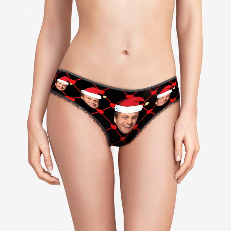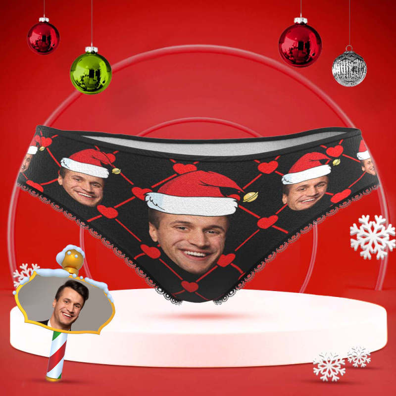 Benutzerdefinierte Gesicht Unterwäsche mit Freund Bild Personalisierte Weihnachten Hut Muster Frauen Shorts