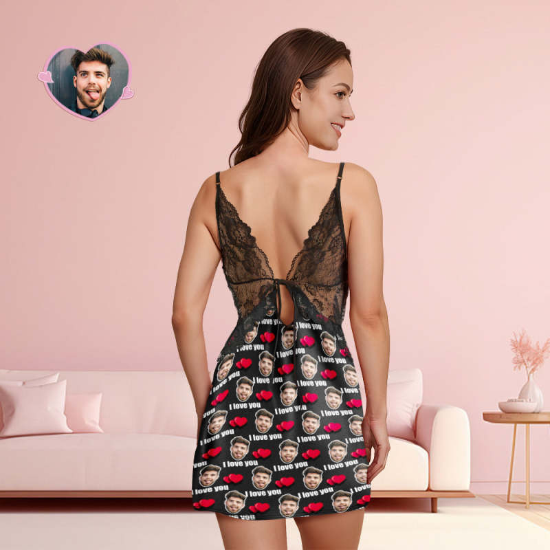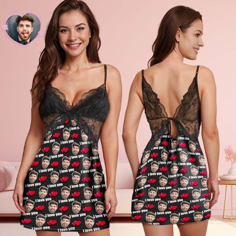 Benutzerdefiniertes Gesicht Damen-nachtwäsche Mit Spitze „i Love You“, Personalisiertes Foto-nachtwäsche, Geschenk Für Sie