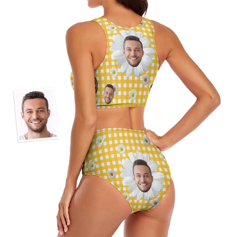 Benutzerdefinierte Gesicht Damen Little Daisy Serie Plaid zweiteiliger Badeanzug