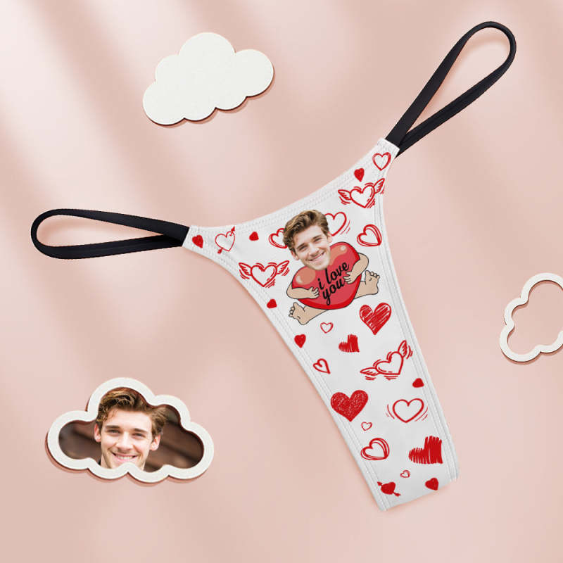 Custom Face Damen Tanga Tanga „i Love You With Hearts“, Lustiges Süßes Geschenk Für Freundin