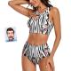 Benutzerdefinierte Gesicht Frauen Zebra Streifen Sexy Zweiteiliger Badeanzug