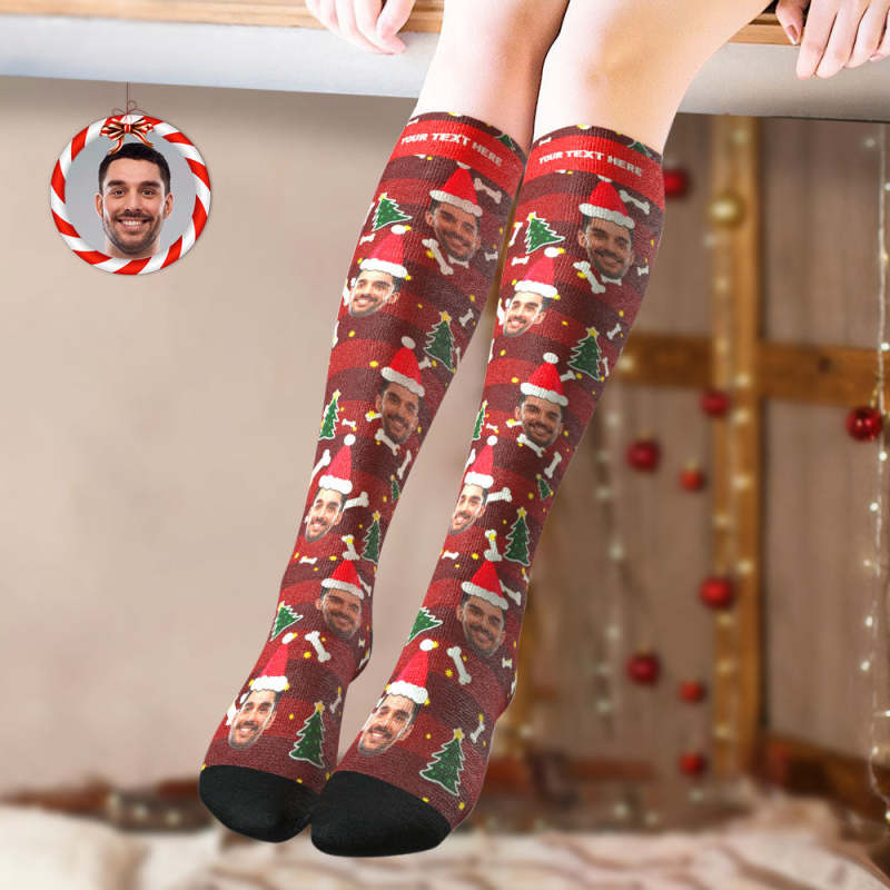 Benutzerdefinierte Kniehohe Socken Mit Personalisiertem Gesicht, Weihnachtssocken, Weihnachtsbaum